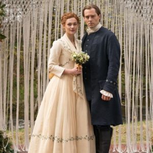 This episode is a mixture of several things from the book, namely the Gathering and the wedding at Mt Helicon and the harvest festival celebrated on the Ridge several months later.   The episode was very enjoyable but there are some scenes from the book that I was looking forward to seeing on screen.  Weirdly, among these were the maggots!  I missed the maggots!  When book Roger finally arrives back from the Mohawk to profess his love to Bree, he’s got a nasty infection in his foot.  Claire skillfully inserts a few maggots into his infected foot and asks Bree to look after him.  This gives Roger and Bree an opportunity to not only talk to each other, but touch as well.  Bree needs to get used to a man touching her and Roger needs to learn how to touch his wife following a vicious rape and childbirth.  The maggots allow these two love birds to mend their somewhat broken relationship.  I missed that.